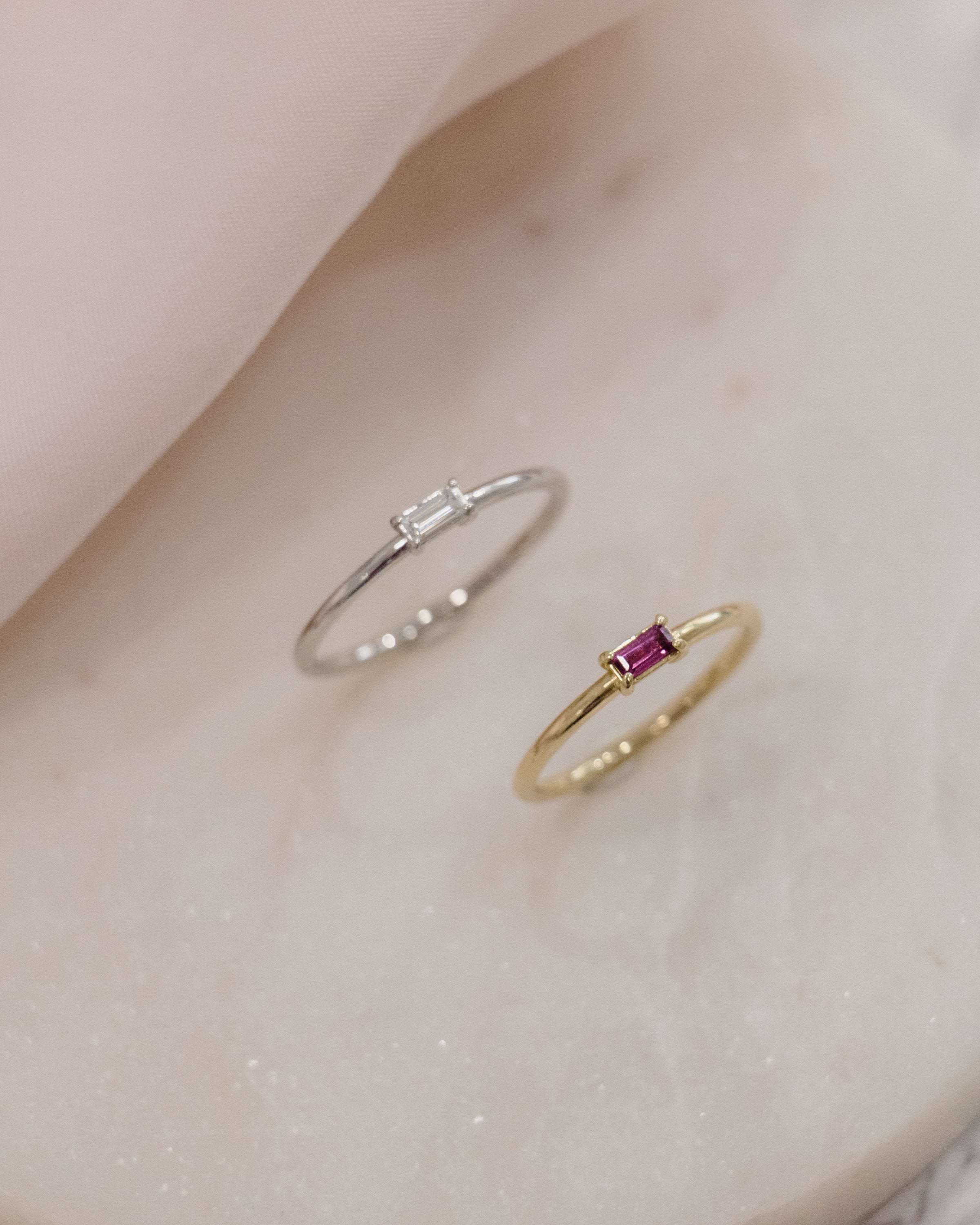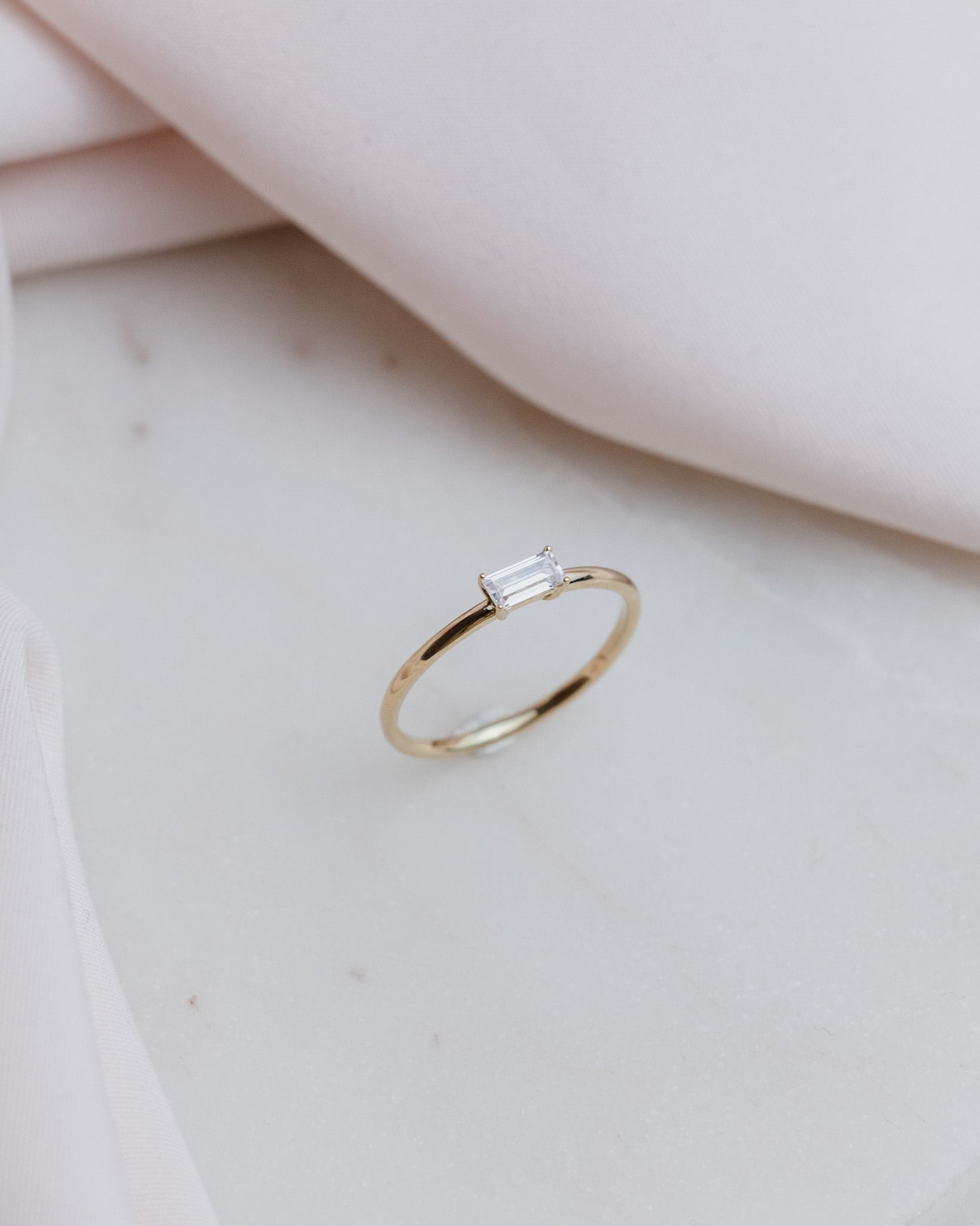 14 karátos sárga arany gyűrű, 2x4mm bagett csiszolású rózsaszín turmalin kővel készleten elérhető.